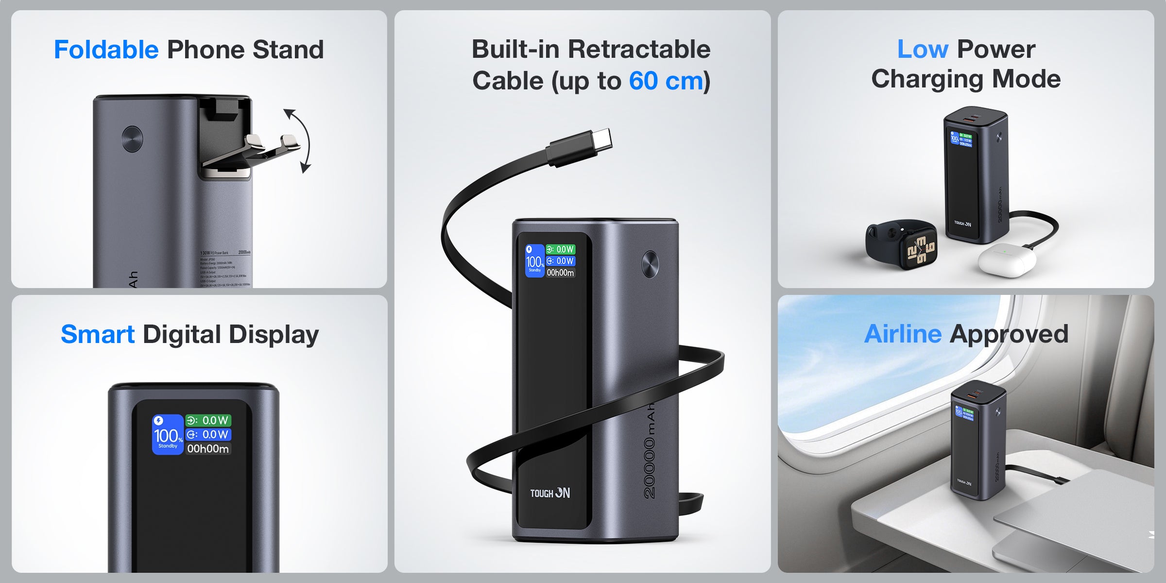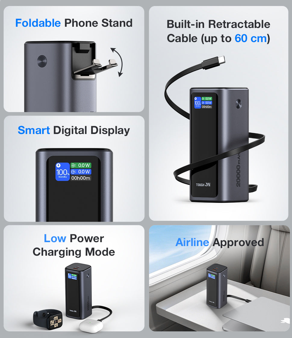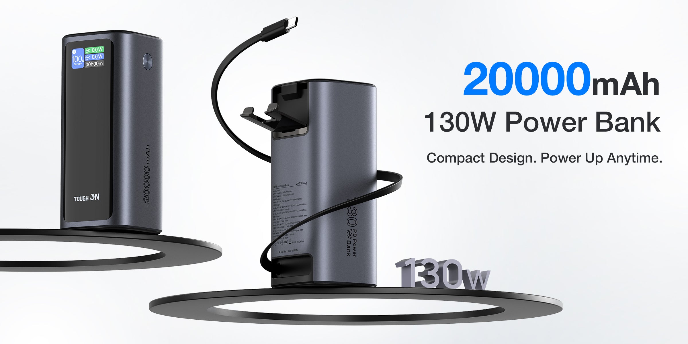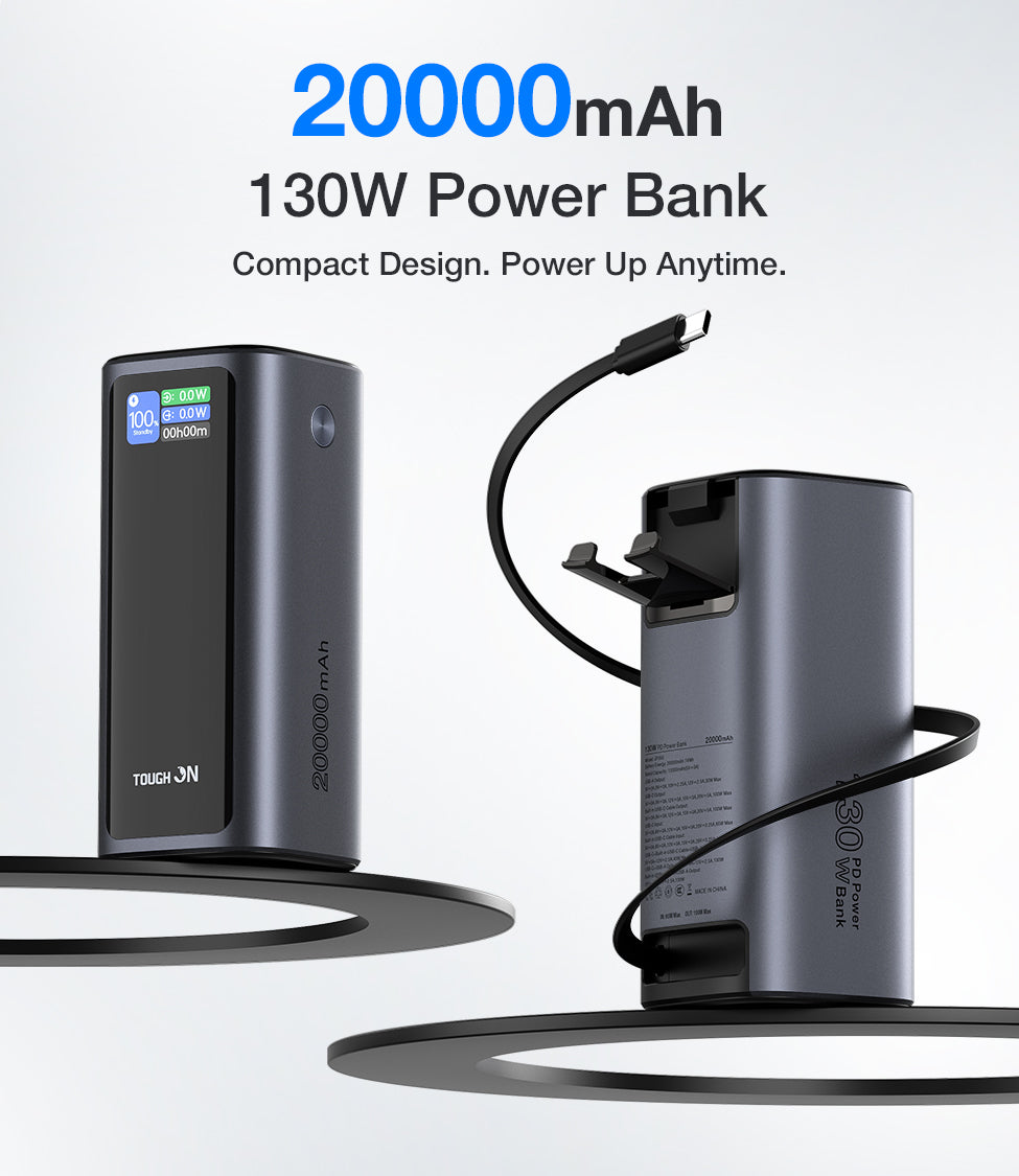 Tough On Laptop Power Bank 130W 20000mAh with Retractable Cable and Stand