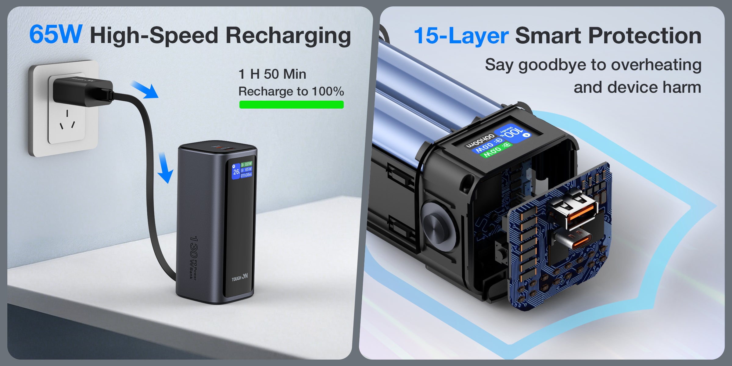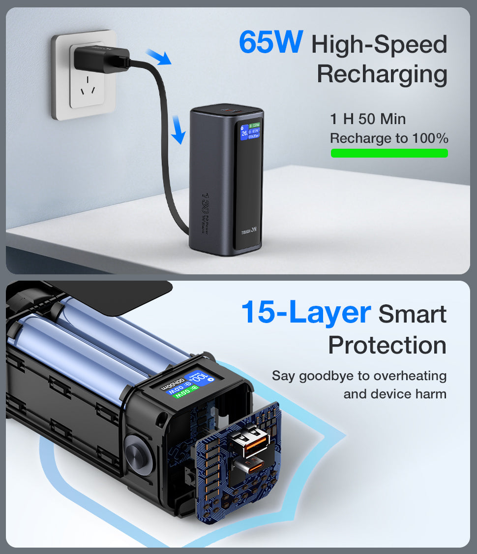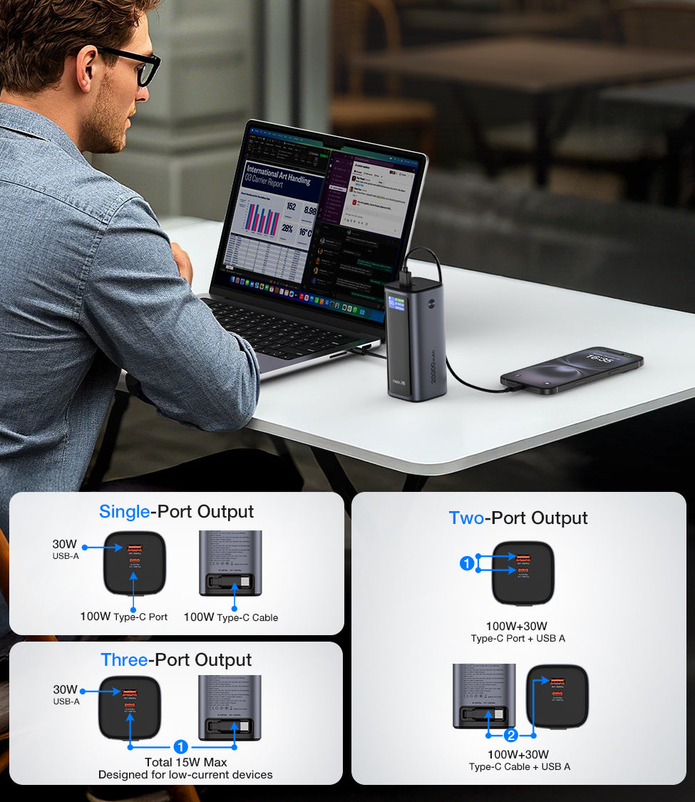 20,000mAh Long-Lasting Power Supply: The ultra-large 20,000mAh capacity provides multiple charges for your devices, ensuring you stay powered throughout your journey. Equipped with 100W ultra-fast charging, it can charge a MacBook Pro 16" up to 43% in just 30 minutes.