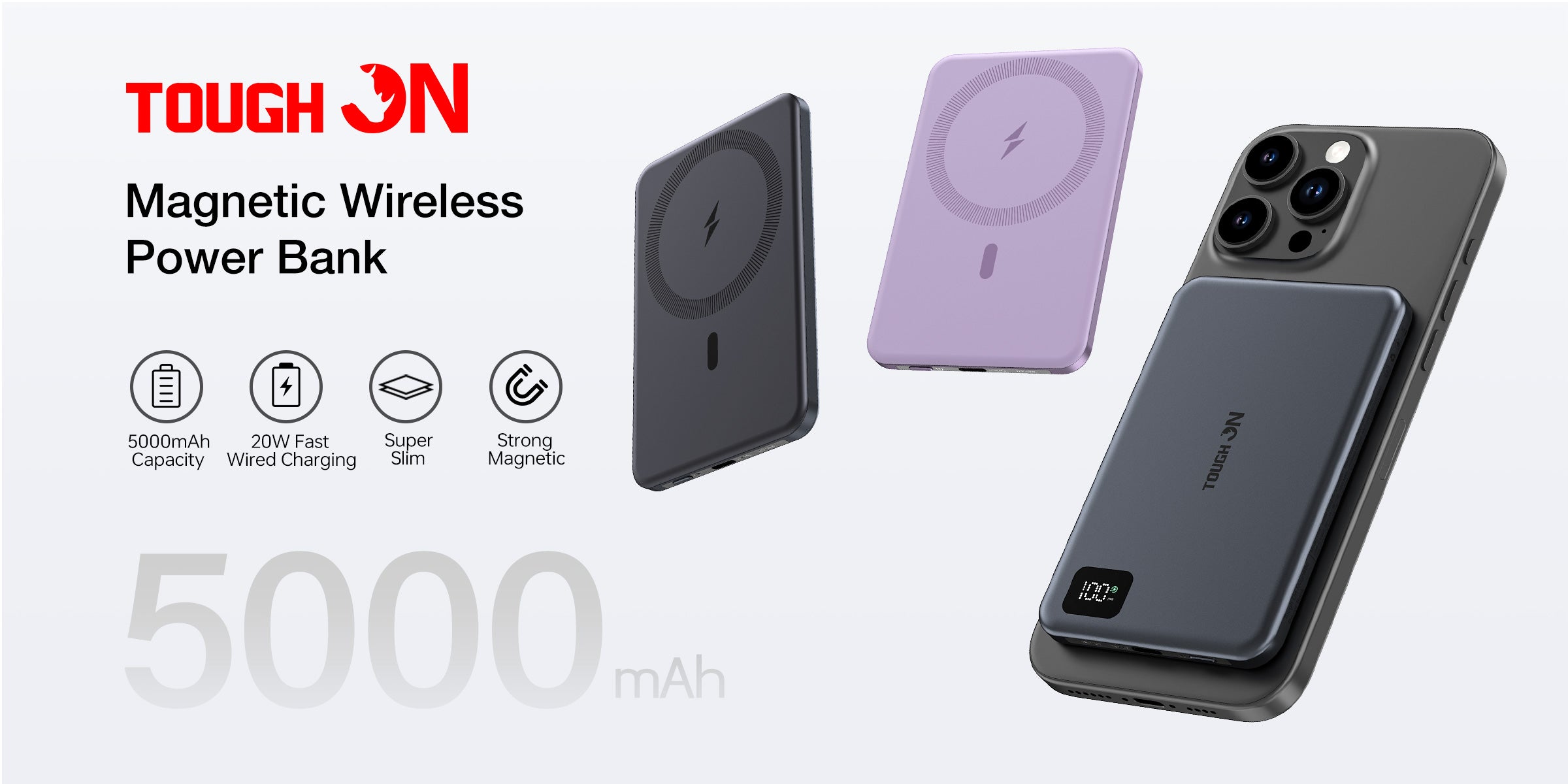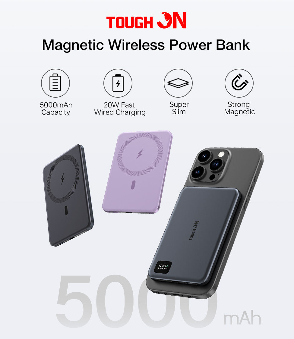 - Tough On 5000mAh Magnetic Power Bank (10W wireless, 20W wired)