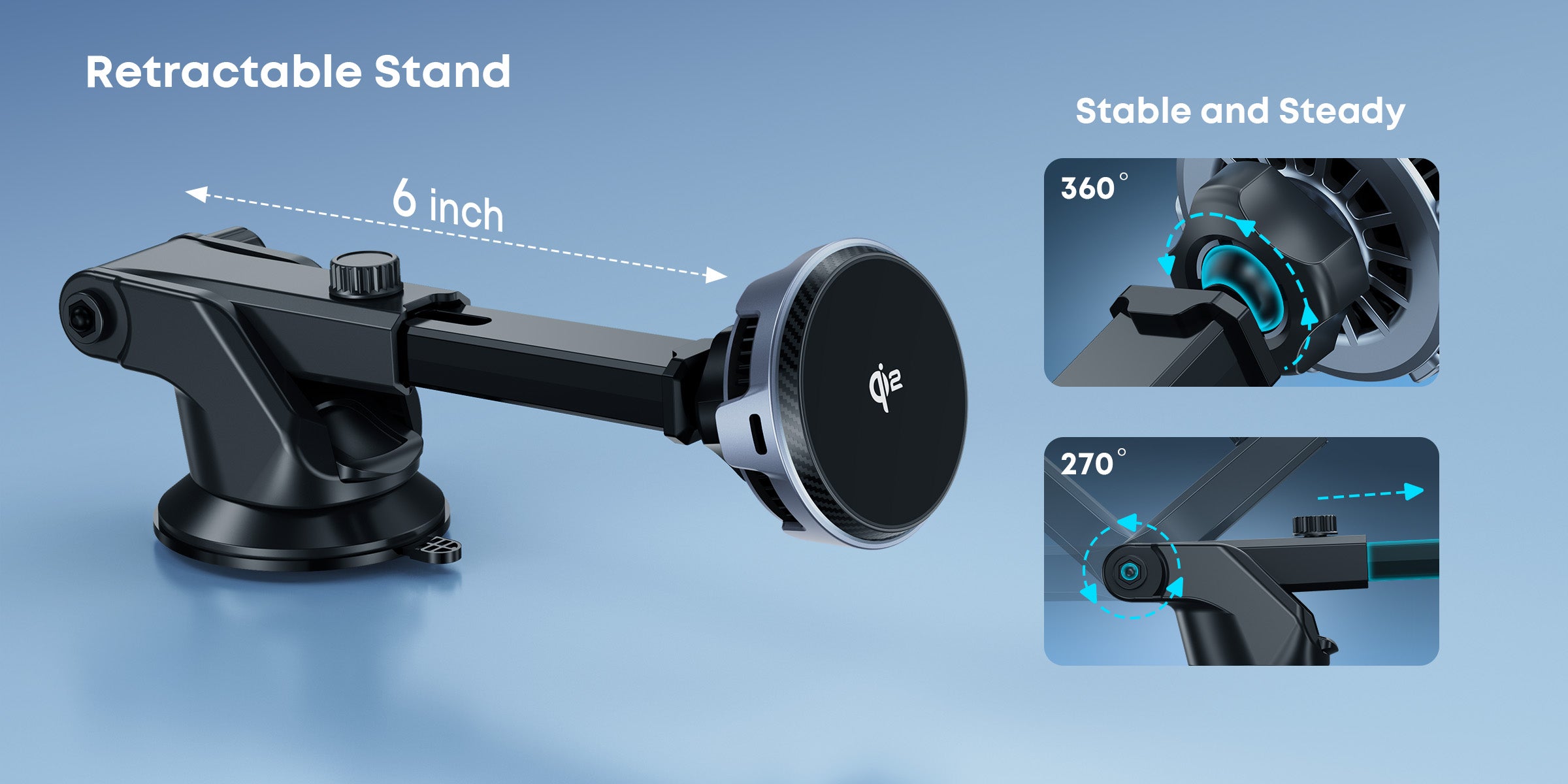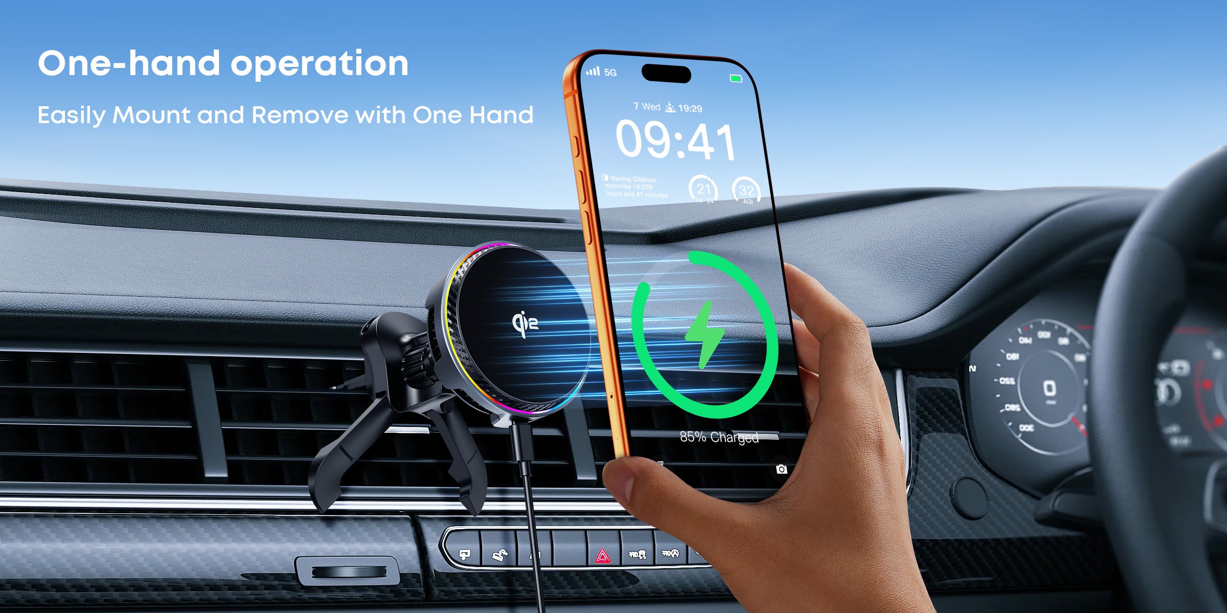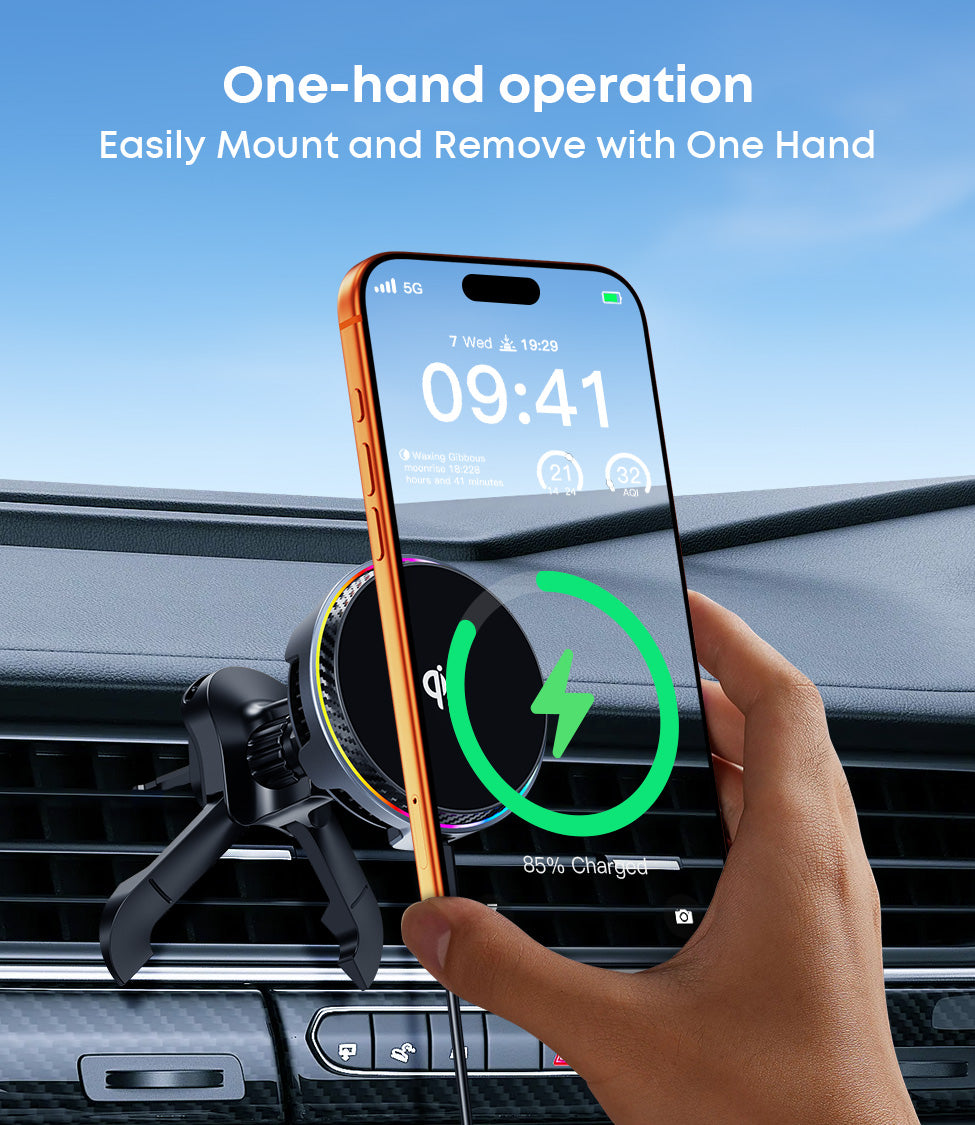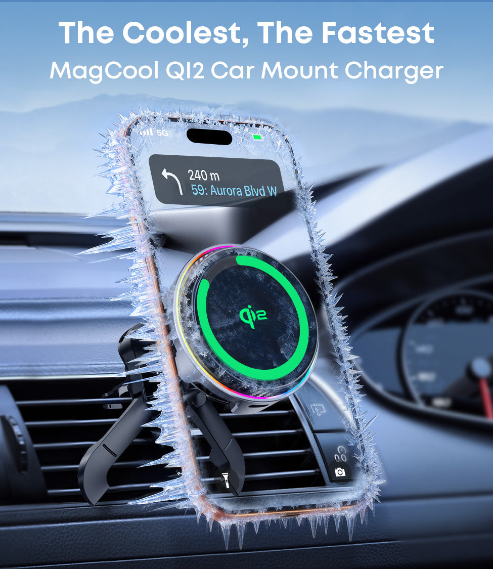 Officially Qi2-certified, this 15W MagSafe wireless car charger combines high-speed power delivery with active cooling for a faster, safer, and more stable charge while driving.