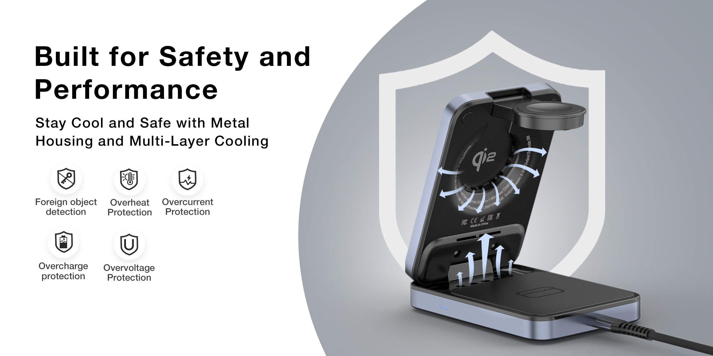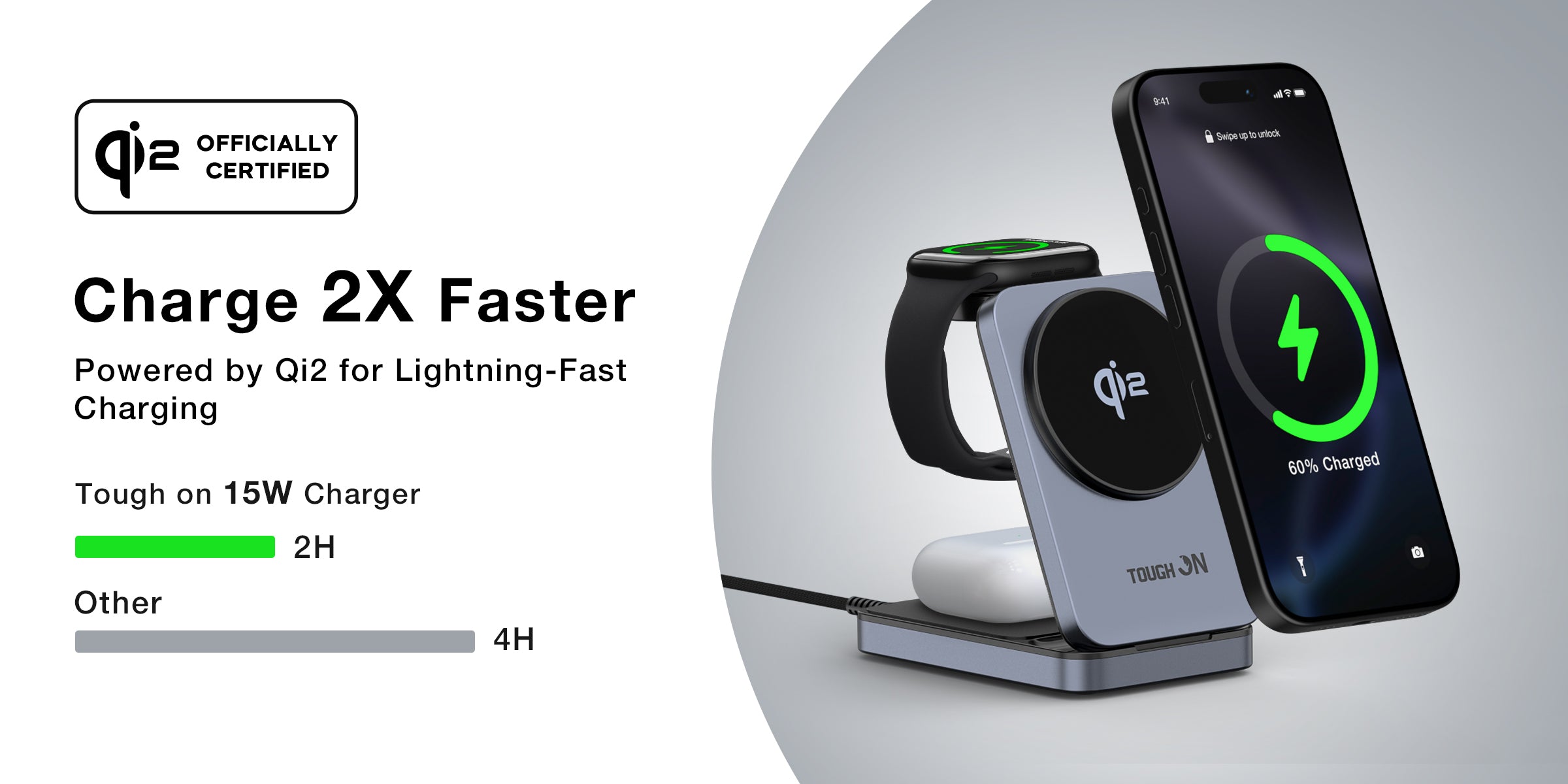 15W Ultra-Fast Qi2 Charging: Experience high-speed 15W charging with Qi2 certification. This charger delivers exceptional performance and redefines fast charging. Seamlessly compatible with MagSafe.