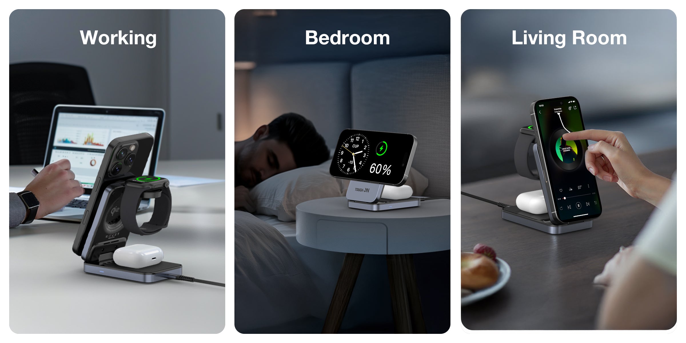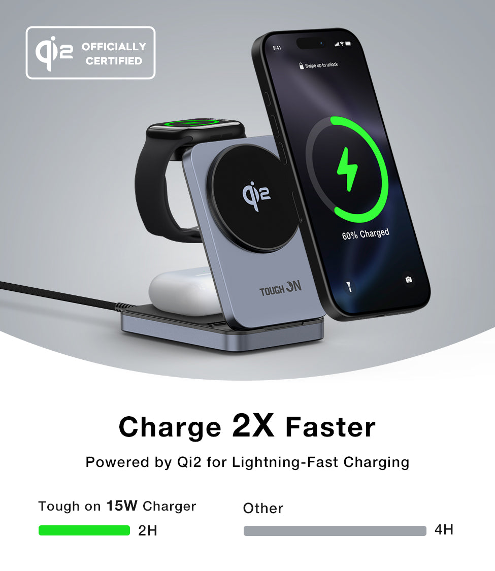 Tough On MagFold Qi2 3-in-1 Wireless Charger Foldable Compatible with MagSafe