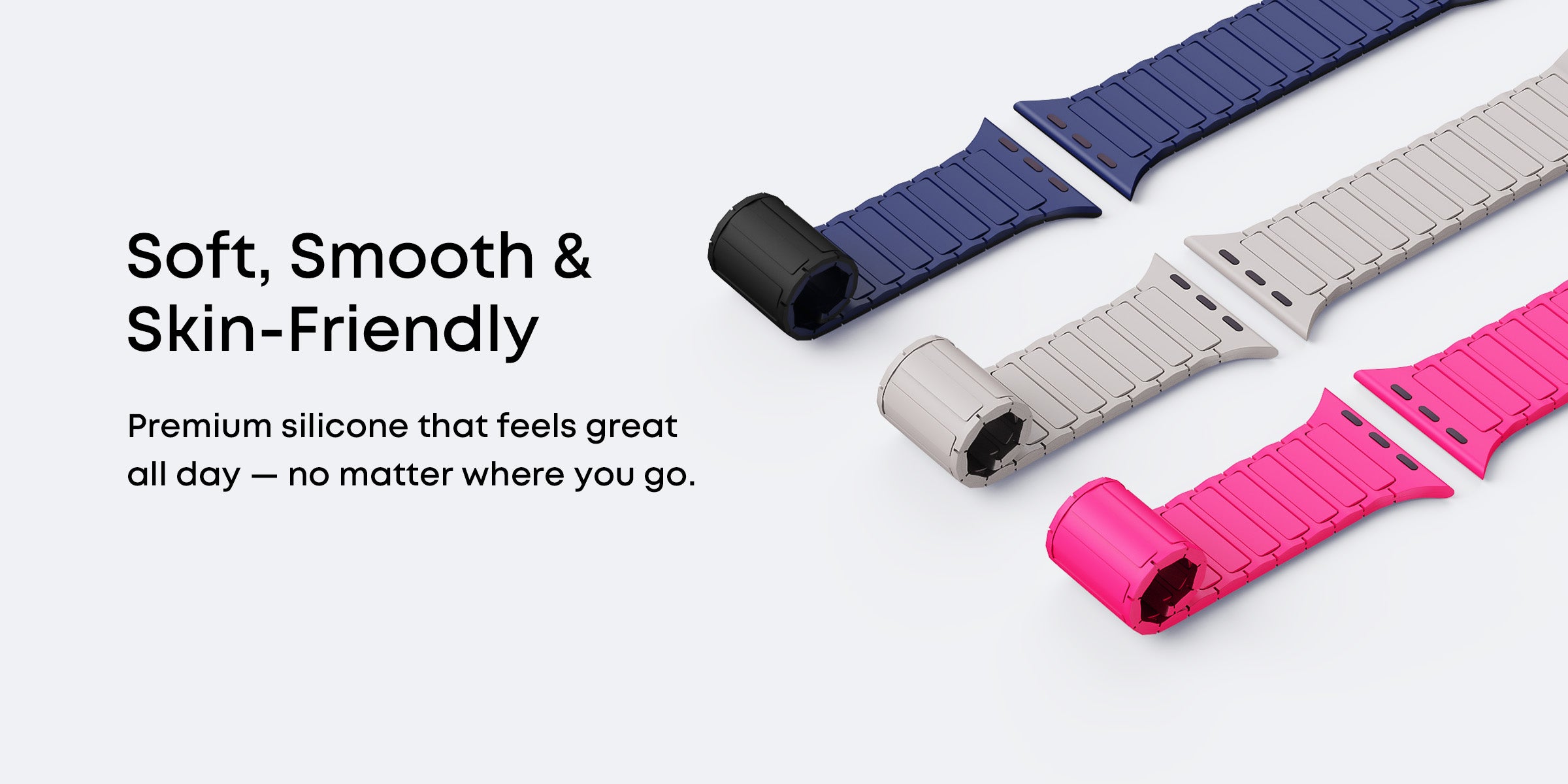 This premium magnetic wristband is slim, waterproof, and easy to clean