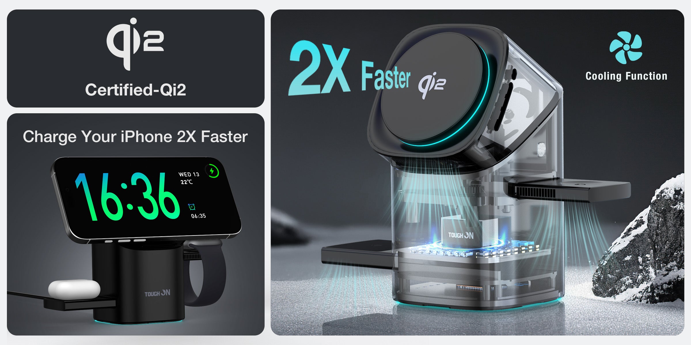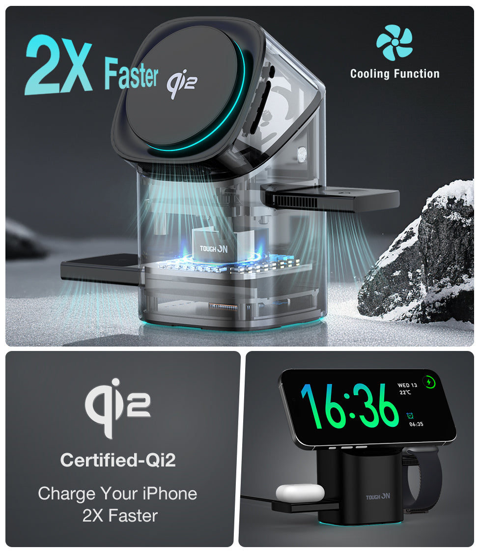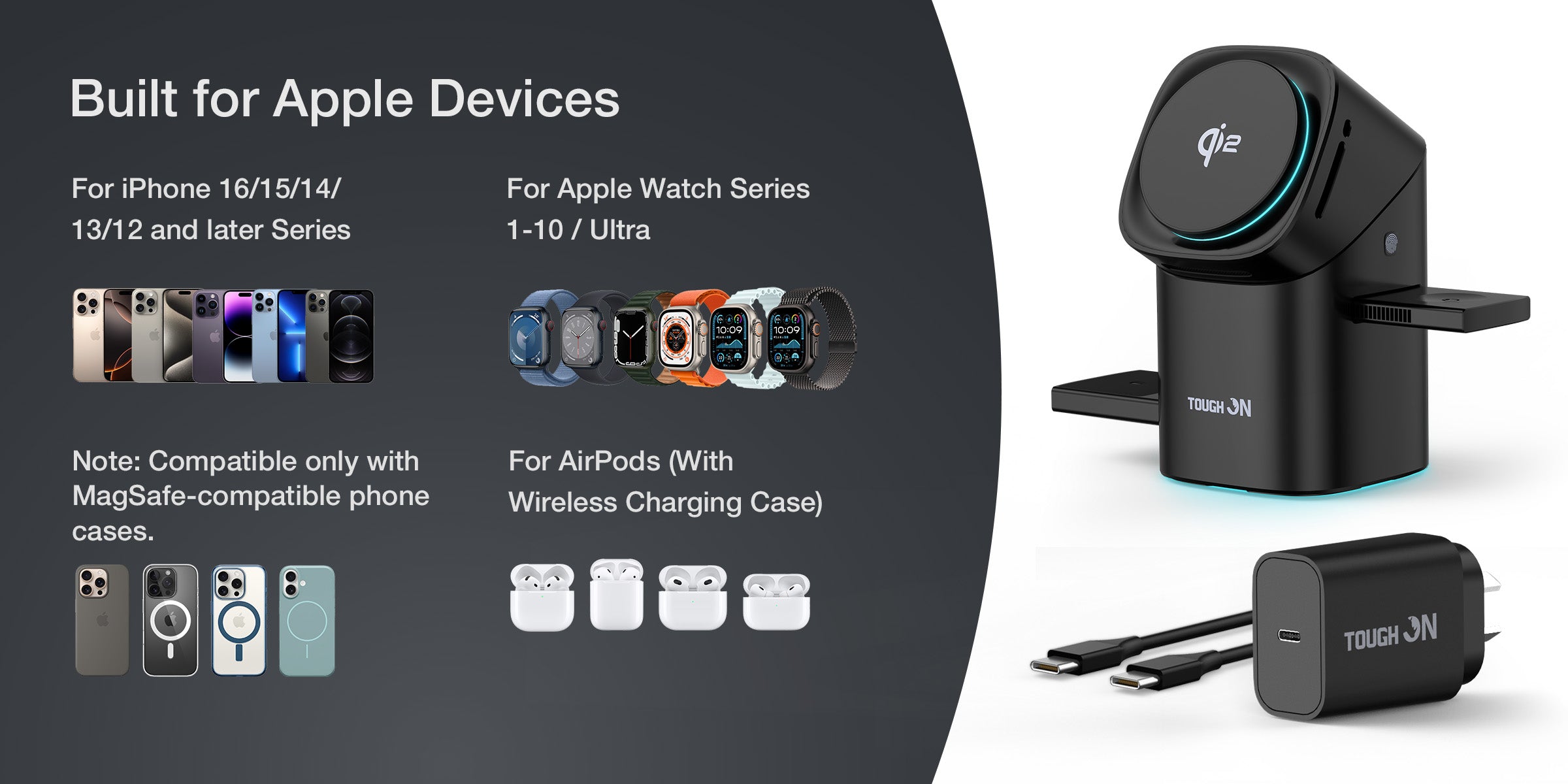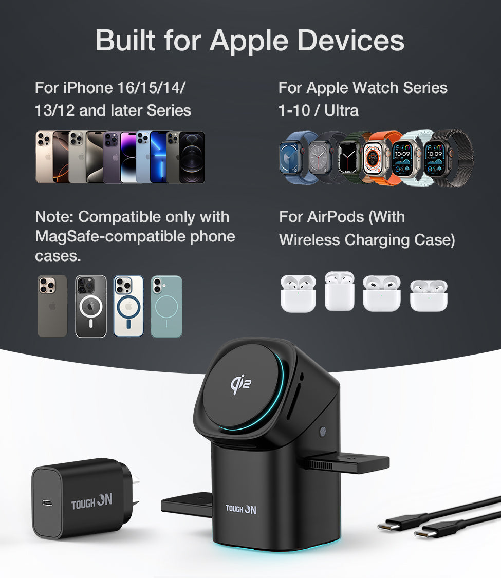 Tough On MagPro Qi2 3-in-1 Wireless Charger for Apple iPhone Watch AirPods