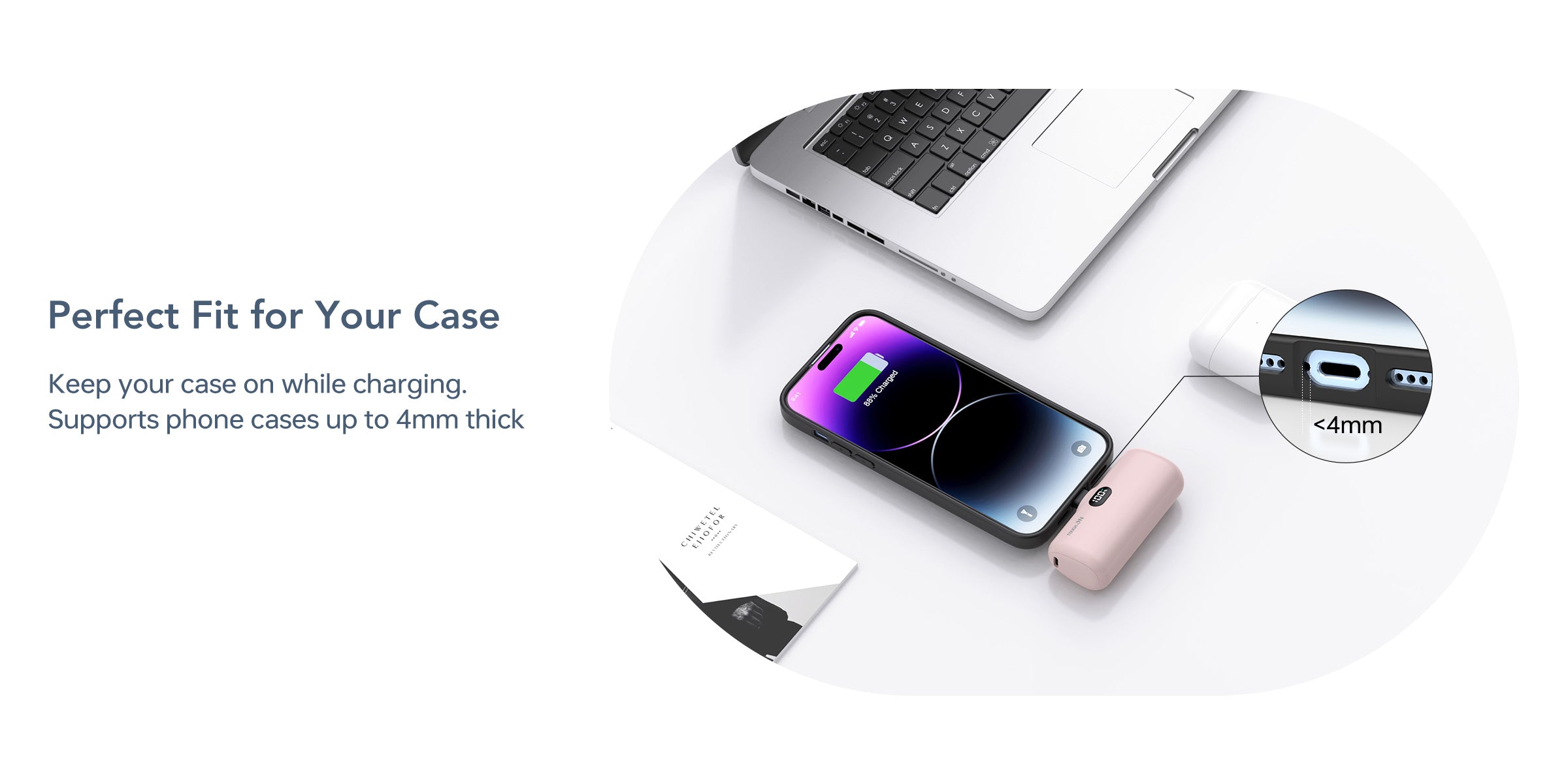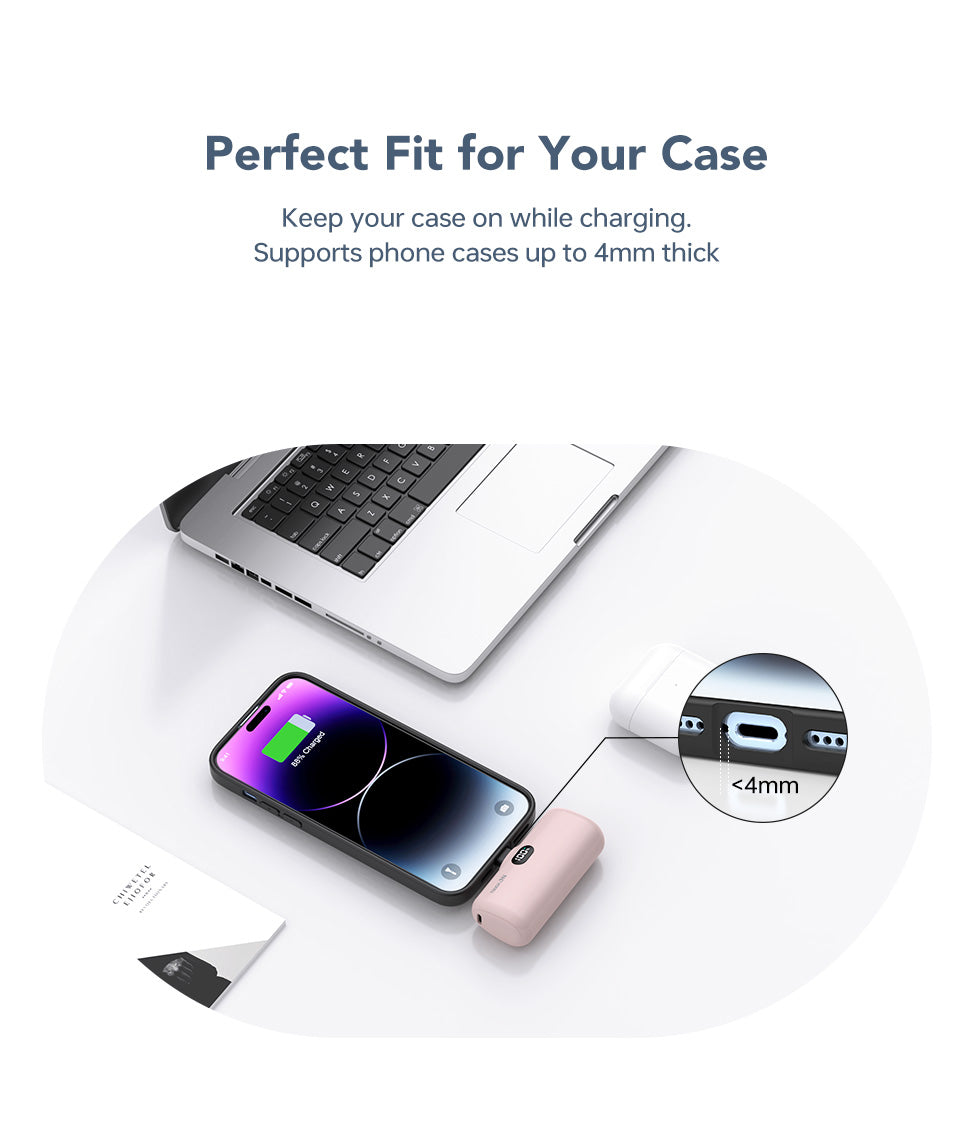Just plug in your iPhone and start charging, plug and play, no need to use an additional charging cable, the digital LED display will show the current battery level to remind you to charge your portable battery charger, a user-friendly design.