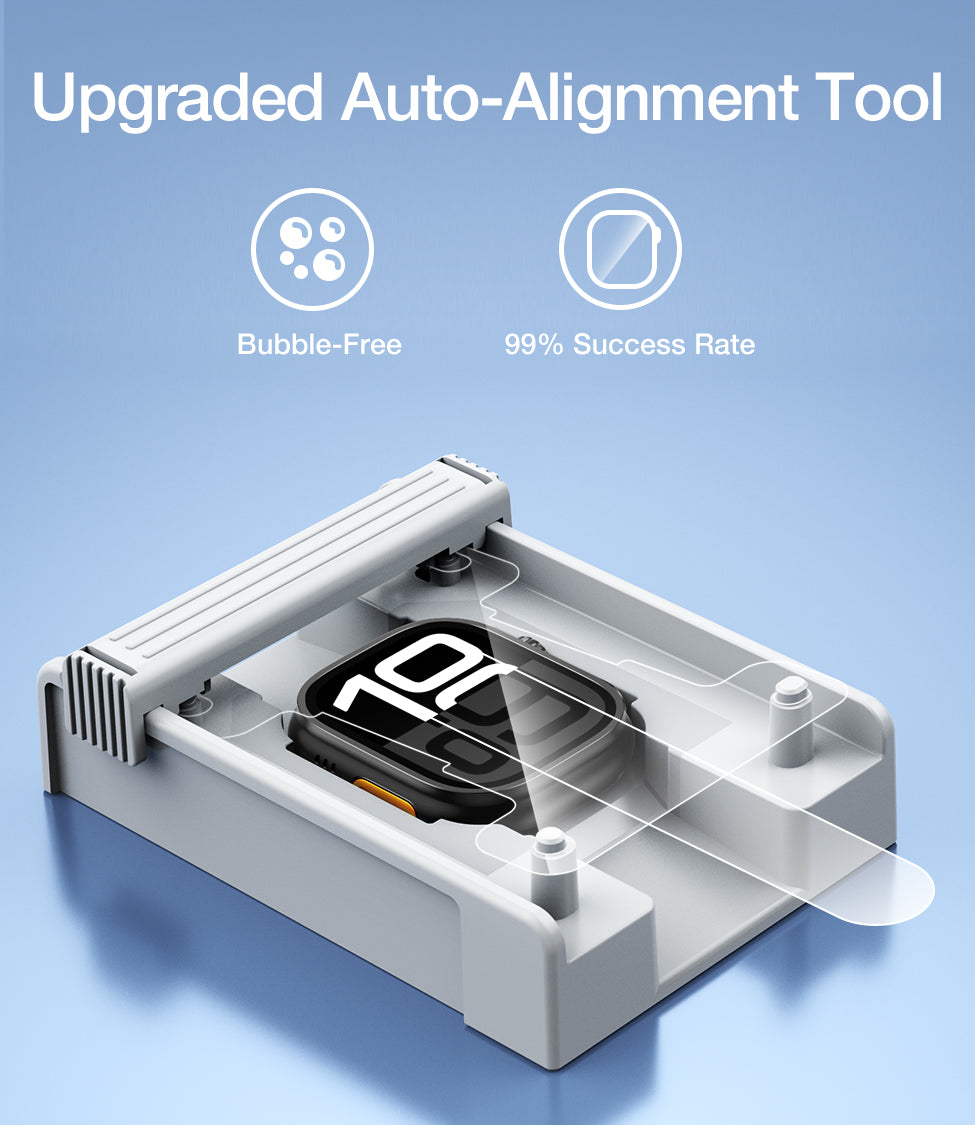 With 99% high transparency and an ultra-thin design, this screen protector delivers vibrant image quality while maintaining the original look and feel of your Apple Watch. Enjoy high responsiveness and a smooth, natural touch experience. -